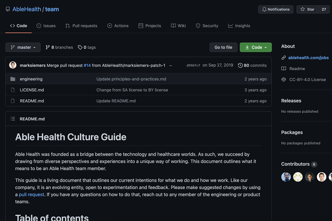 Able Health's guiding culture document, articulating our collective values and maintained collaboratively on GitHub